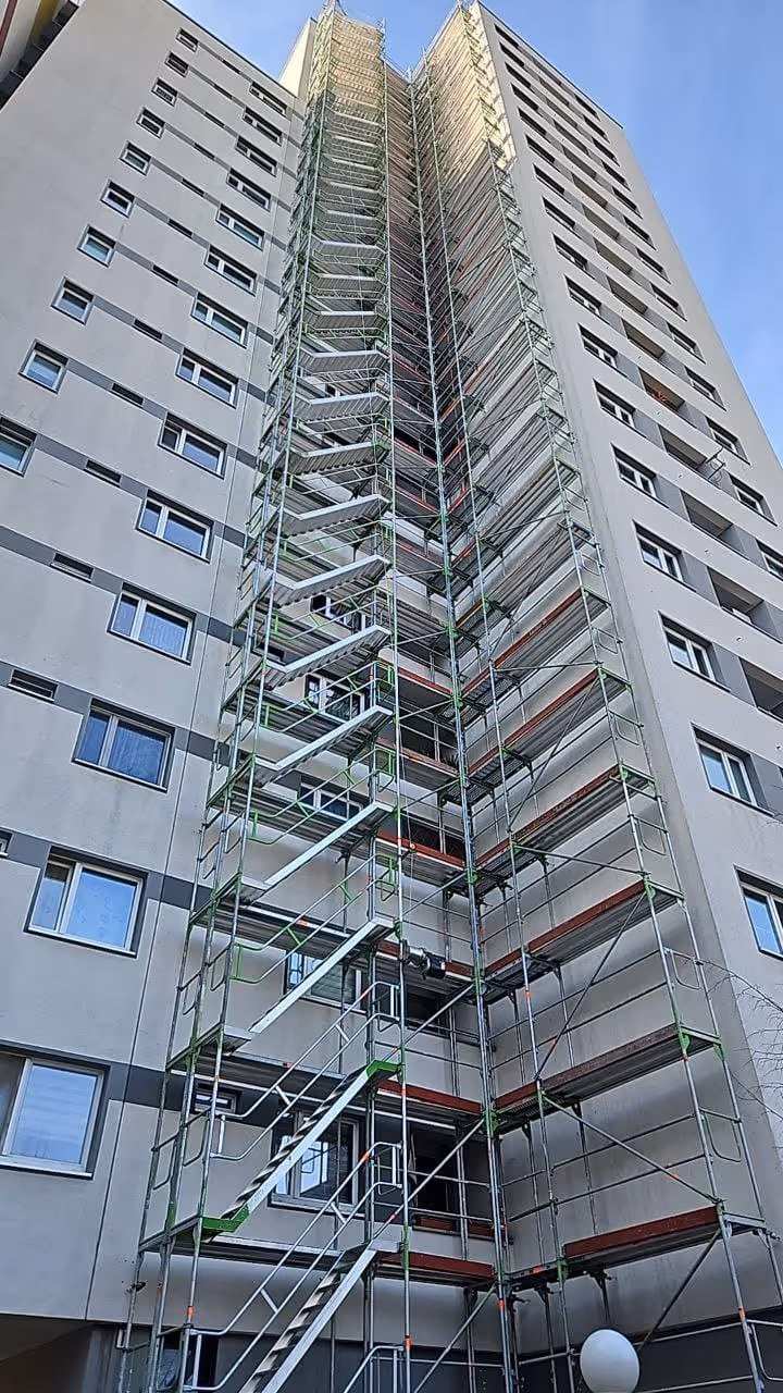 Du arbeitest mit hochwertiger Schutzkleidung, modernem Werkzeug und aktuellen Gerüstsystemen.